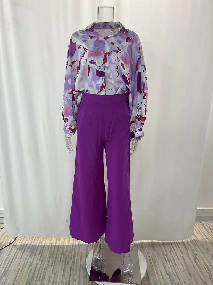 Conjuntos de Pantalones de Dos Piezas con Estampado de Primavera y Otoño para Mujer, Conjunto de Dos Piezas Informal y Holgado de Moda, Camisas de Manga Ancha, Pantalones de Pierna Ancha, Trajes para Mujer
