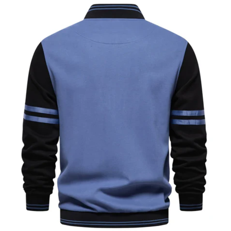 Chaqueta Varsity de Primavera/Otoño para Hombre, 100% Algodón, Transpirable, con Rayas y Diseño de Parches
