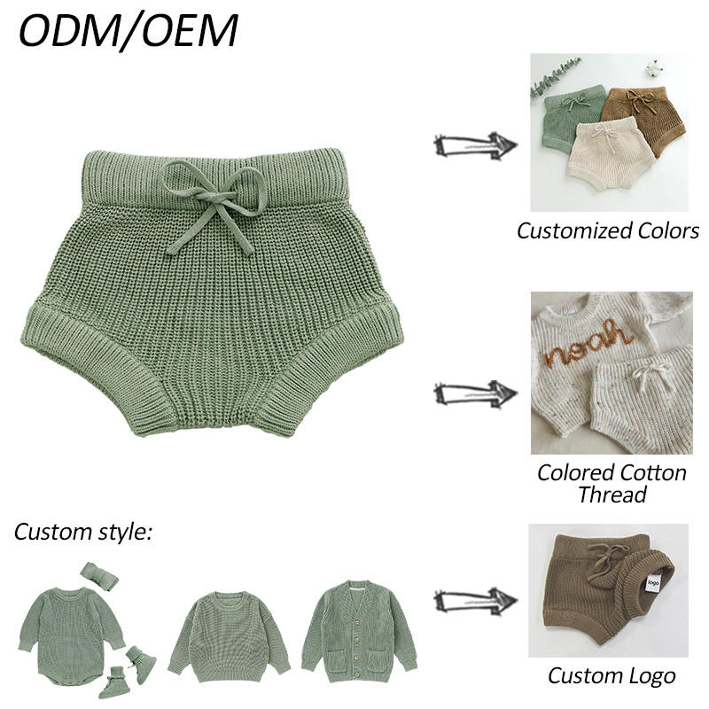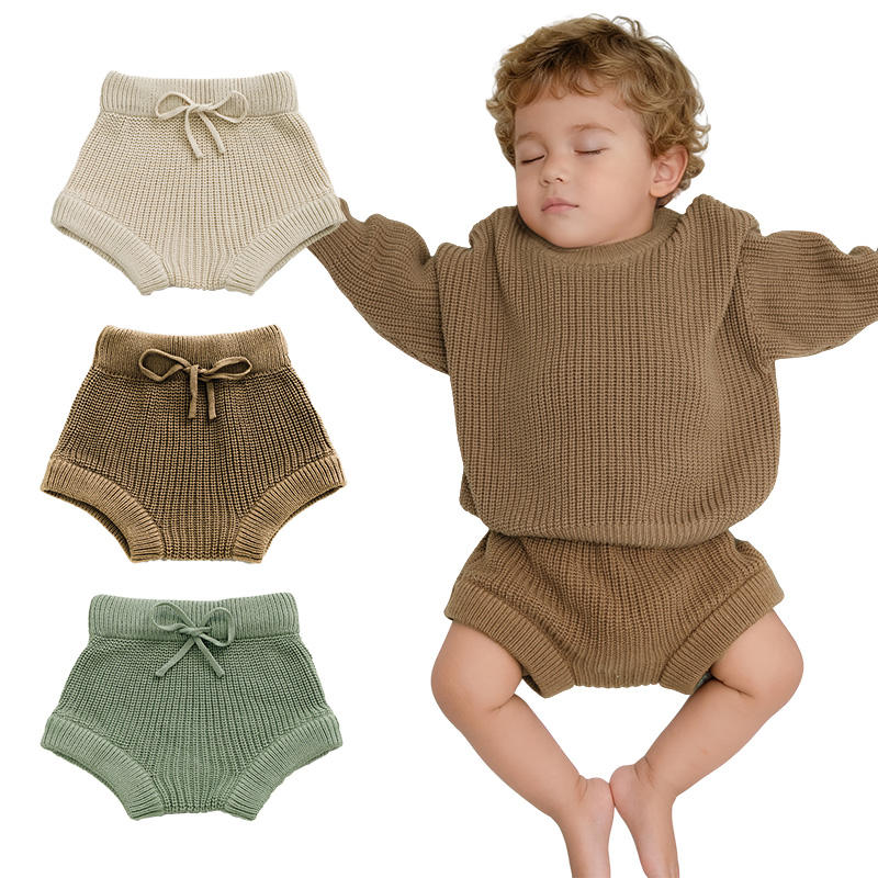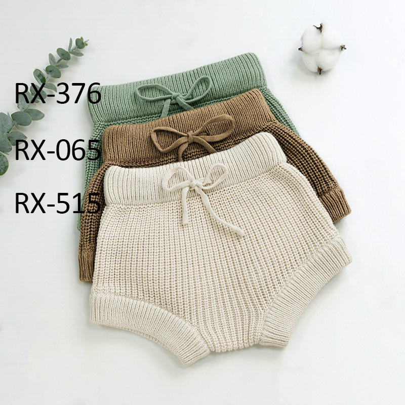 Primavera Otoño Invierno Sólido Crochet Tejido Elástico Bebé Bloomer Pantalones Bebé Pañal Pantalones