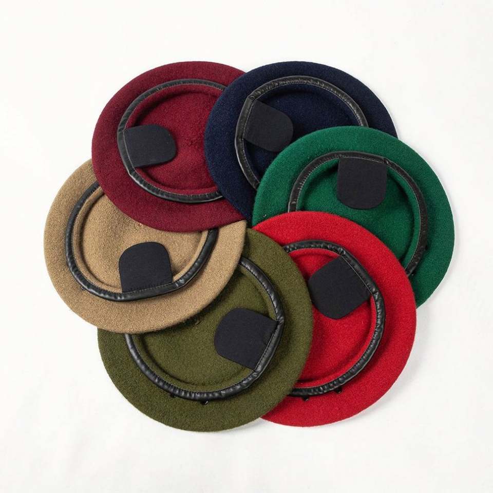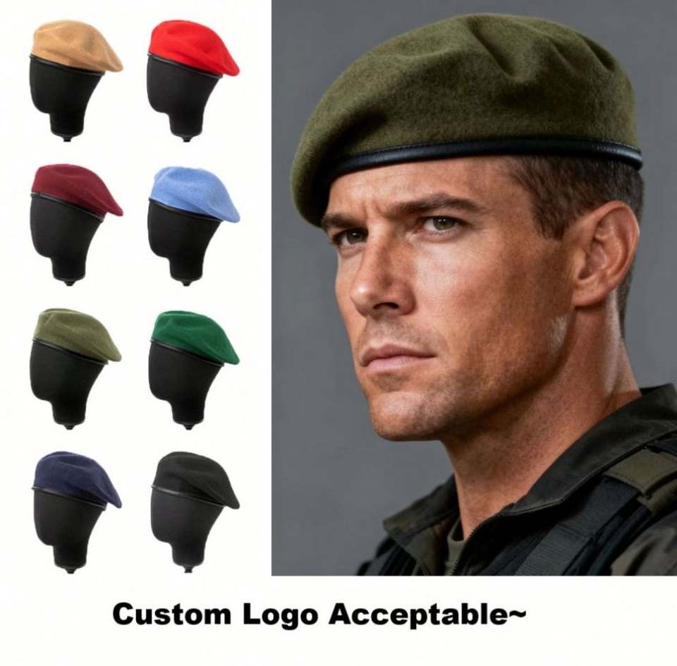 Boina Profesional de Lana para Primavera, Otoño e Invierno, para Academia, Seguridad, Guardia, con Ribete de Cuero PU y Cuerda Ajustable