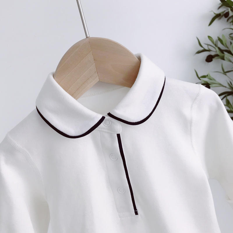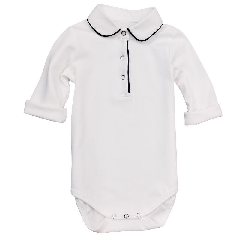 Pijama Enterizo de Algodón Blanco de Manga Larga con Solapa y Pantalón Triangular para Bebé - Colección Primavera