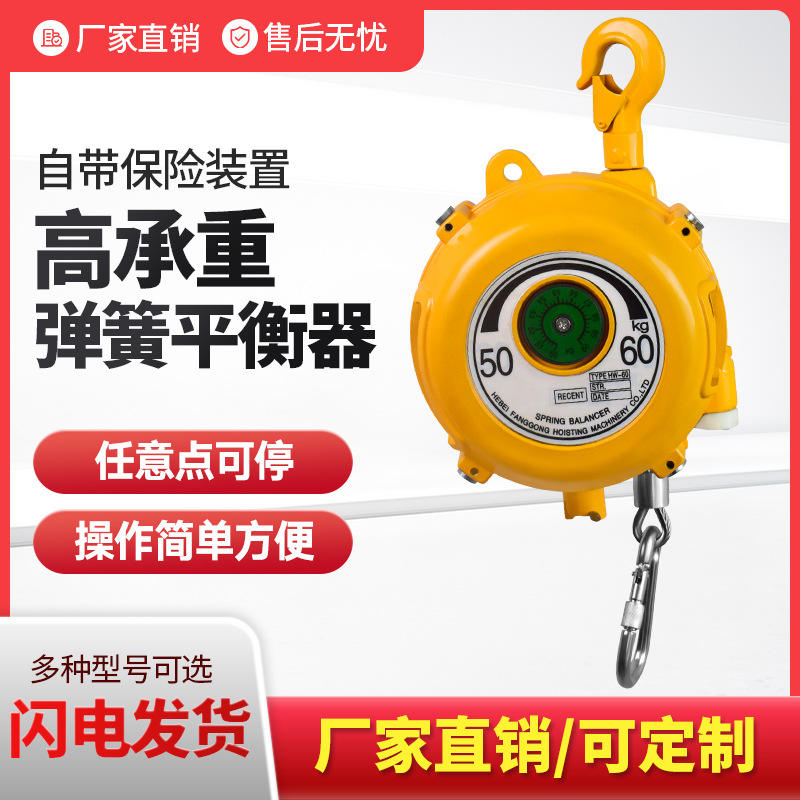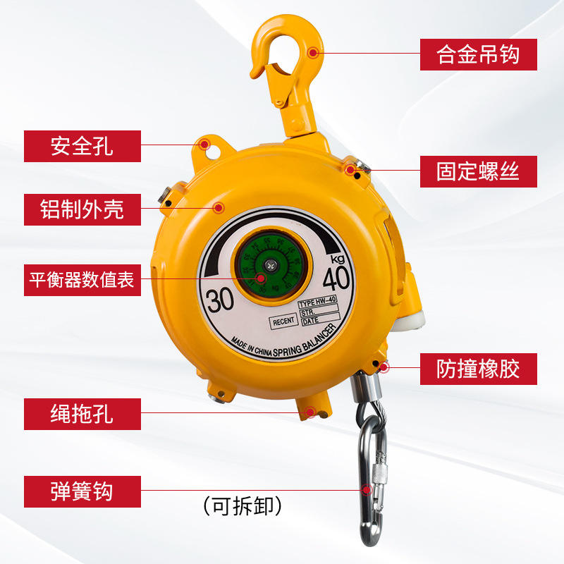 Equilibrador de resorte de 40 kg con carcasa de aluminio y gancho para línea de ensamblaje de taller