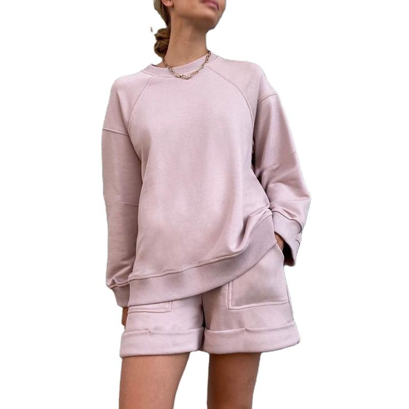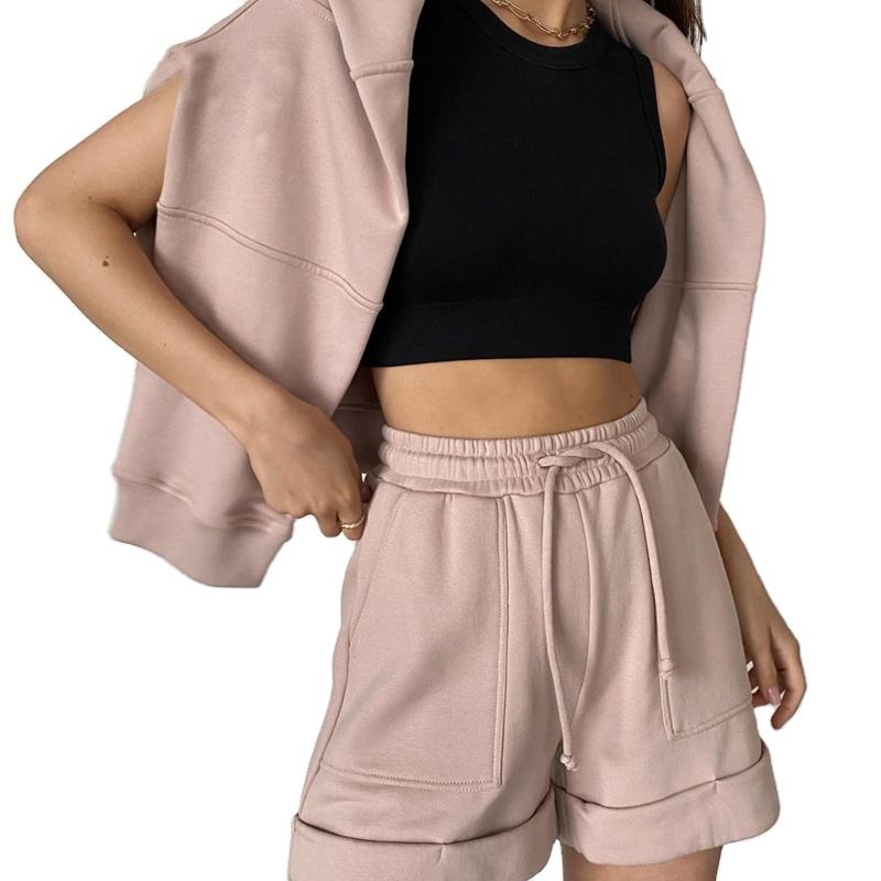 Conjunto Deportivo Informal de Invierno para Mujer, Sudadera con Capucha de Felpa y Pantalones Cortos de Cintura Alta, Estilo Holgado