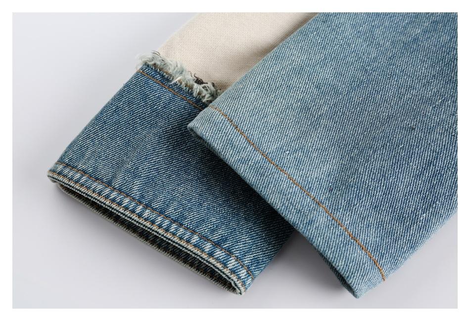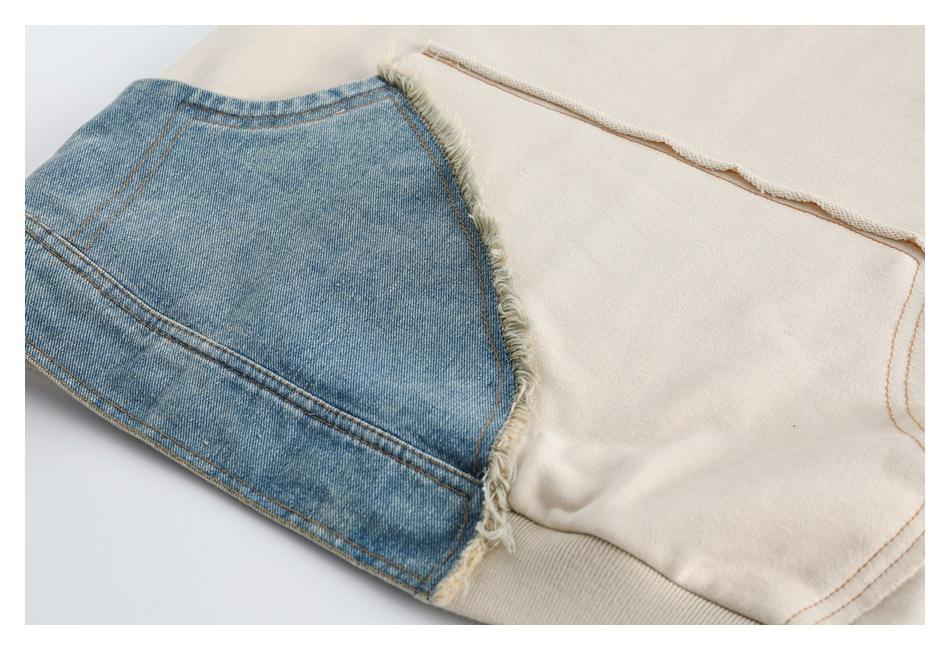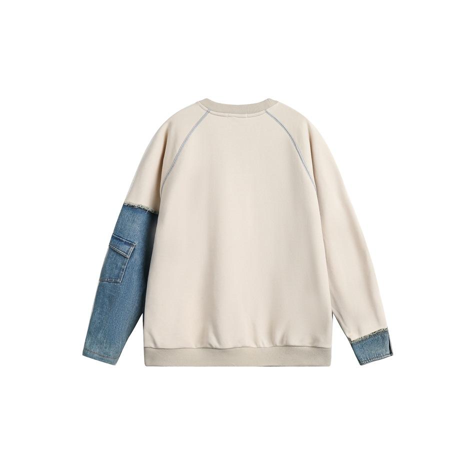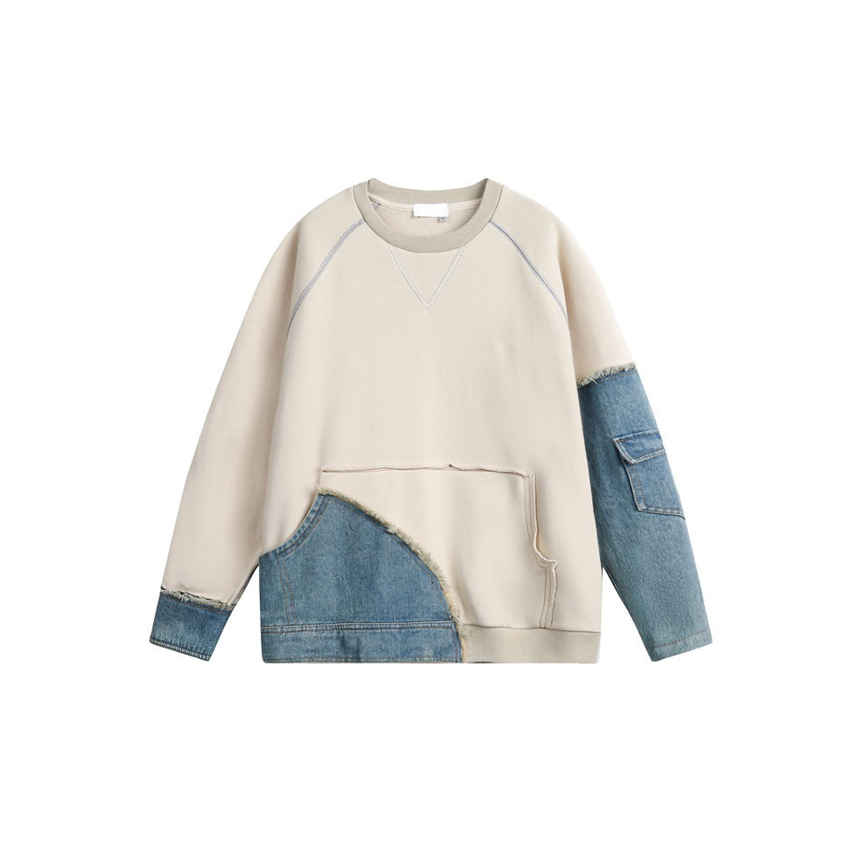 Sudaderas de punto casuales de primavera con contraste de color denim y mangas rotatorias, cuello redondo, para hombre y mujer, de alta calidad.