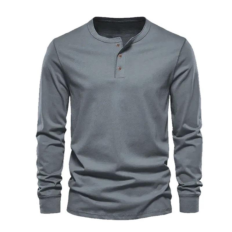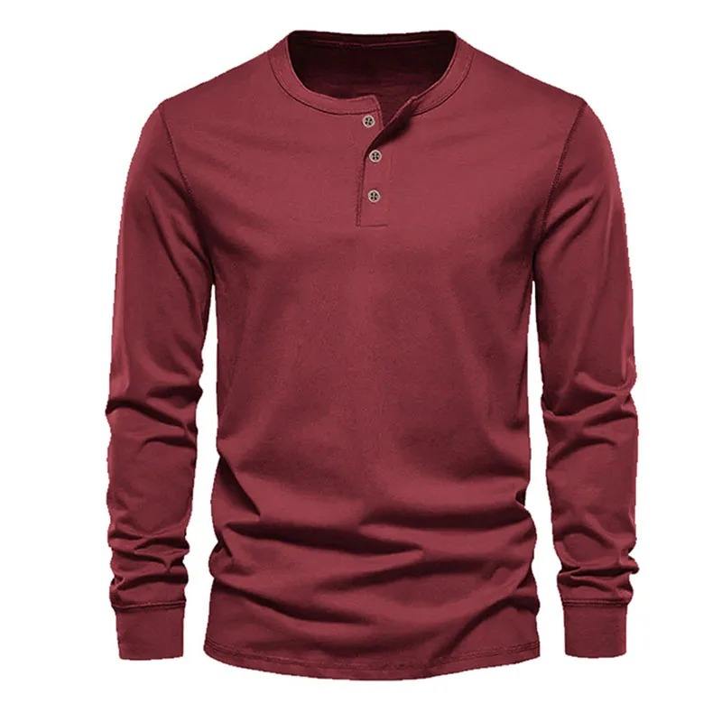 Camiseta de Moda para Hombre, Primavera/Otoño, Elegante, con Botones, Cuello Alto, Color Sólido, Manga Larga, Bolsillo, Camisa Casual para el Trabajo, 100%