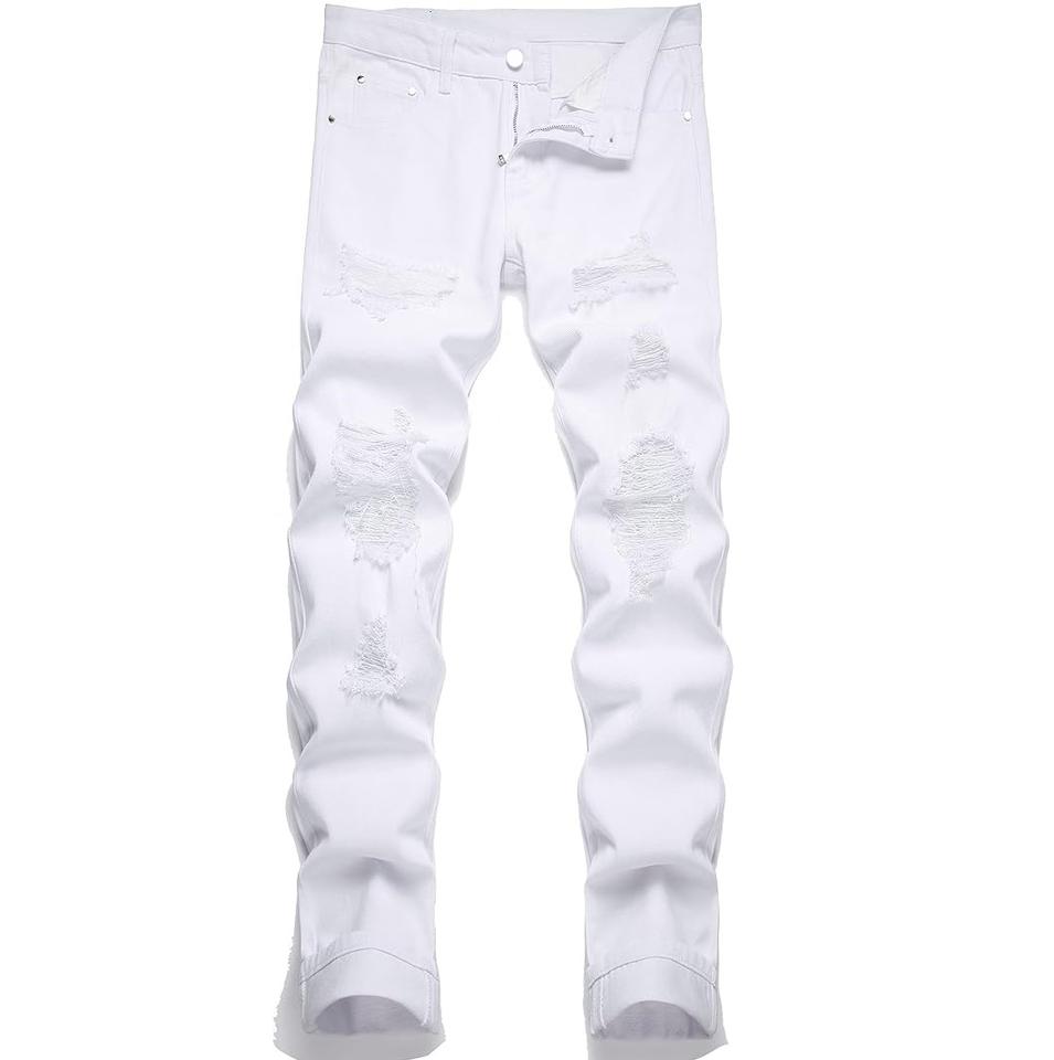 Pantalones Vaqueros Desgastados de Moda Primavera para Hombre, Corte Regular, Estilo Casual, Frente Plano, Transpirables, Gran Venta