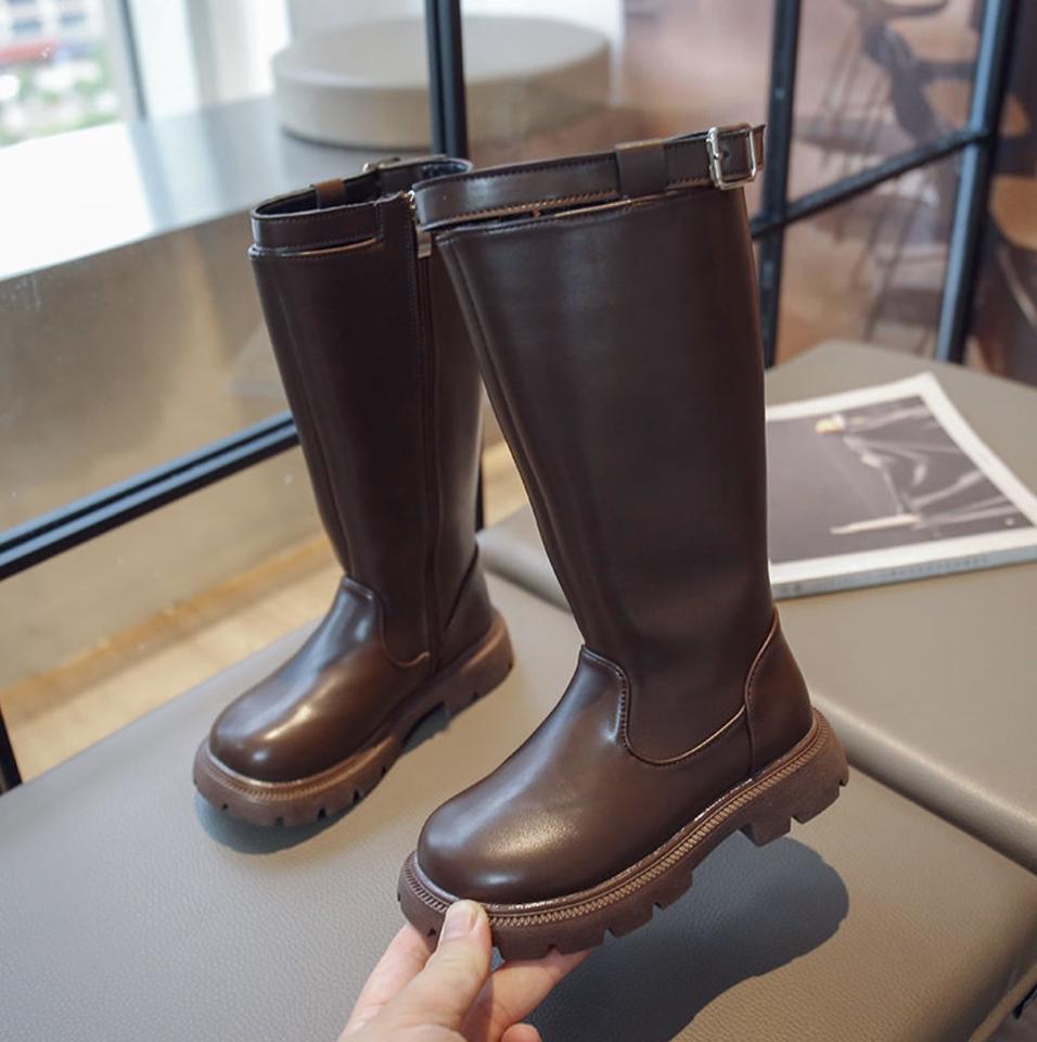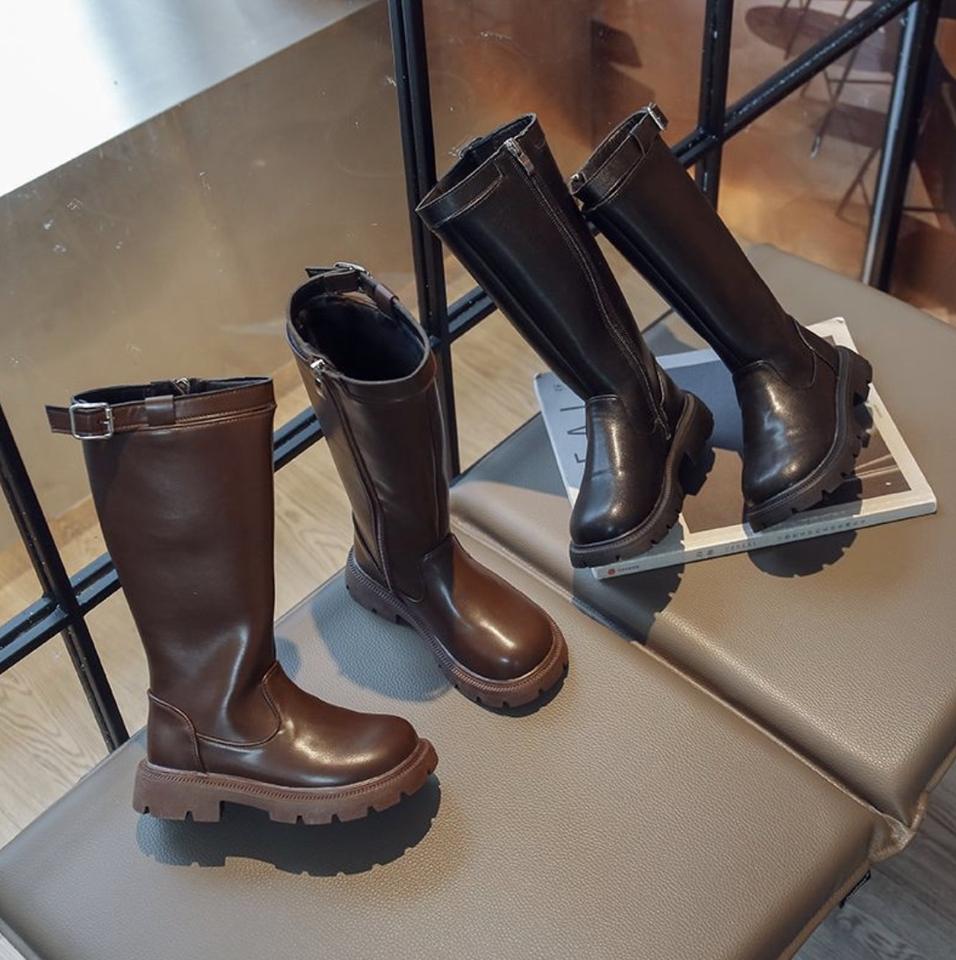 Botas de cuero de caña alta para niñas, con cremallera, a la moda, para invierno, para bebés y niñas.