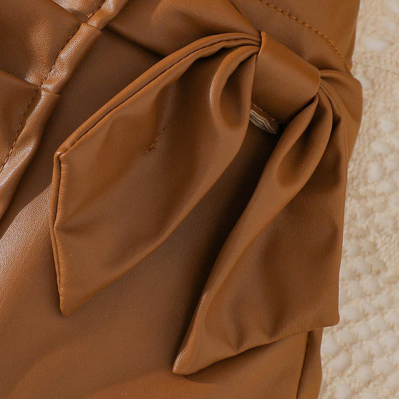 Conjuntos de Ropa para Niñas, Nueva Colección de Primavera, Camisa de Manga Abullonada, Falda de Cuero Sintético con Sombrero, Conjunto de 3 Piezas