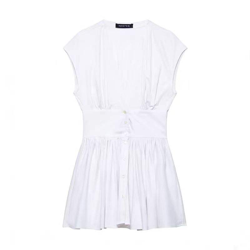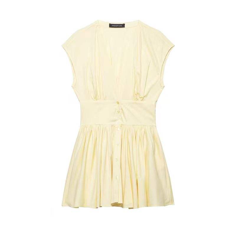 Vestido Mini de Color Sólido, Nuevo Estilo de Primavera, Retro, Cuello en V, Sin Mangas, Casual, para Mujer