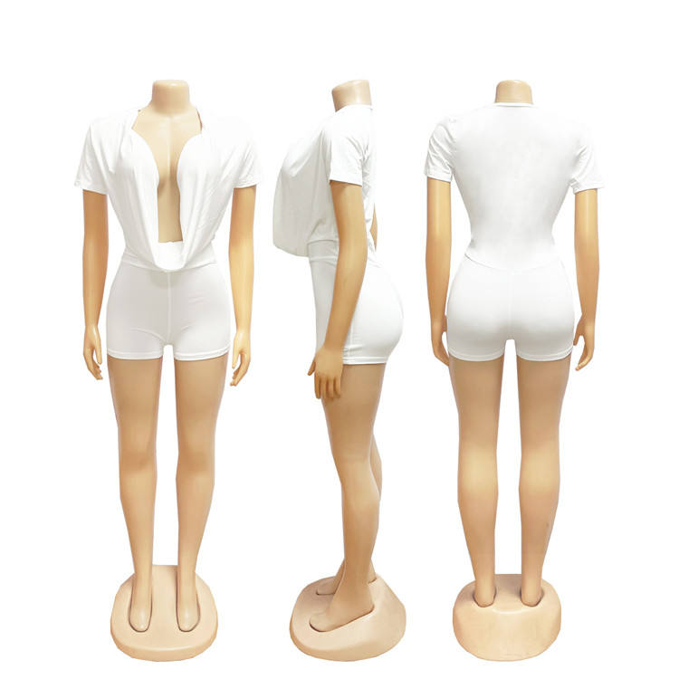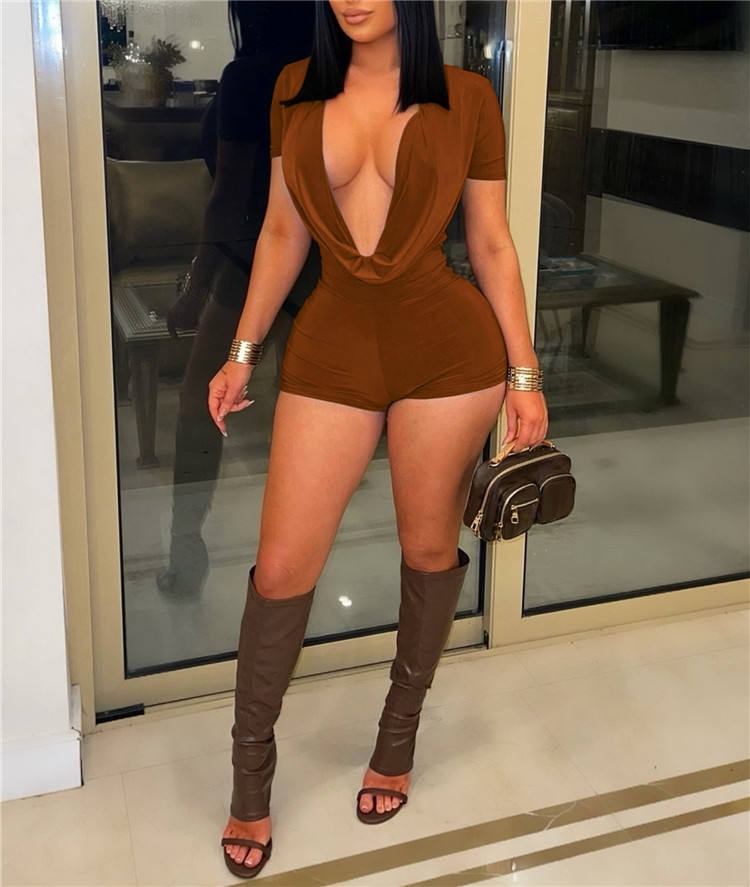 Novedad de Primavera: Mono enterizo ajustado con fruncido y escote en V profundo para mujer, de manga corta, sexy y liso.