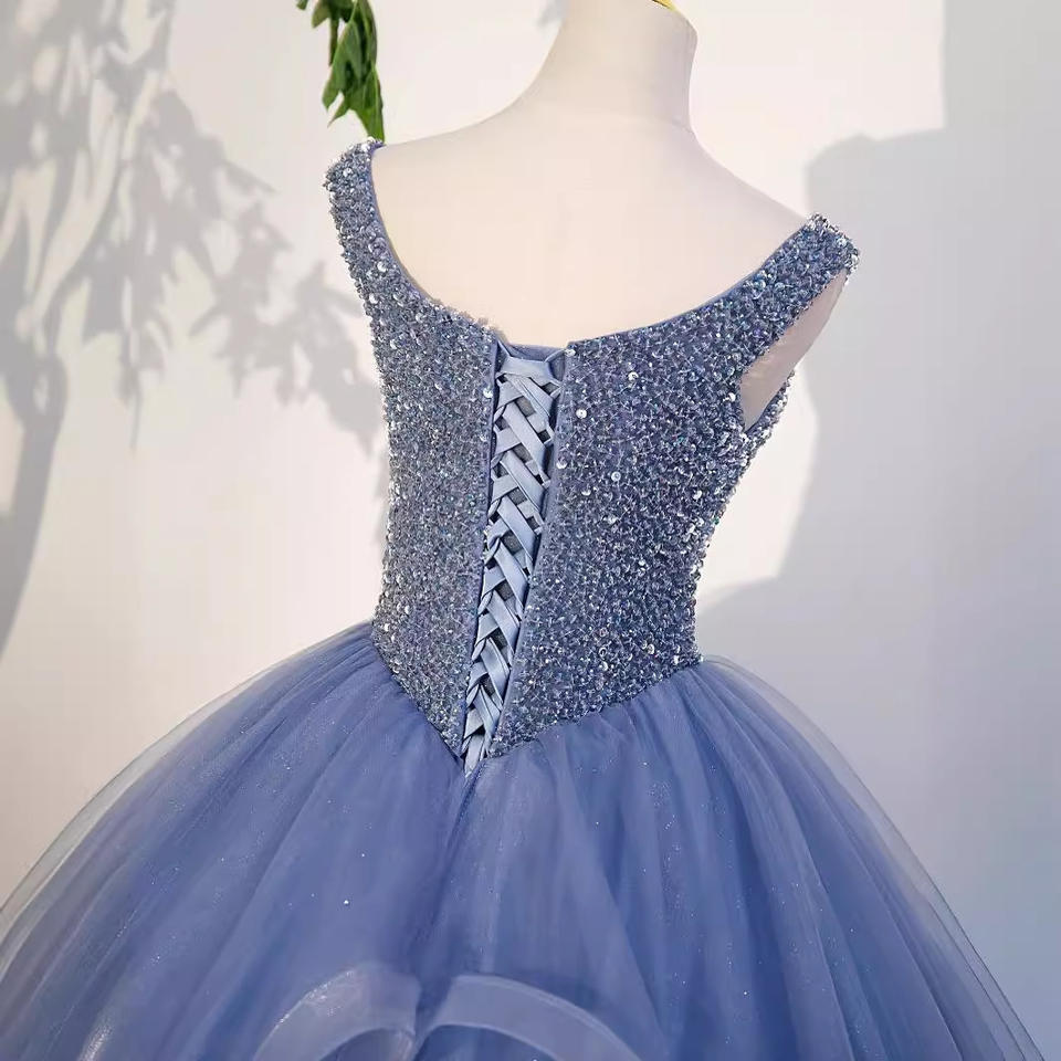 Spring Princess Evening Gown Royal Blue Chiffon Ball Gown Sweetheart Neckline Empire Waistline Glitter Dress