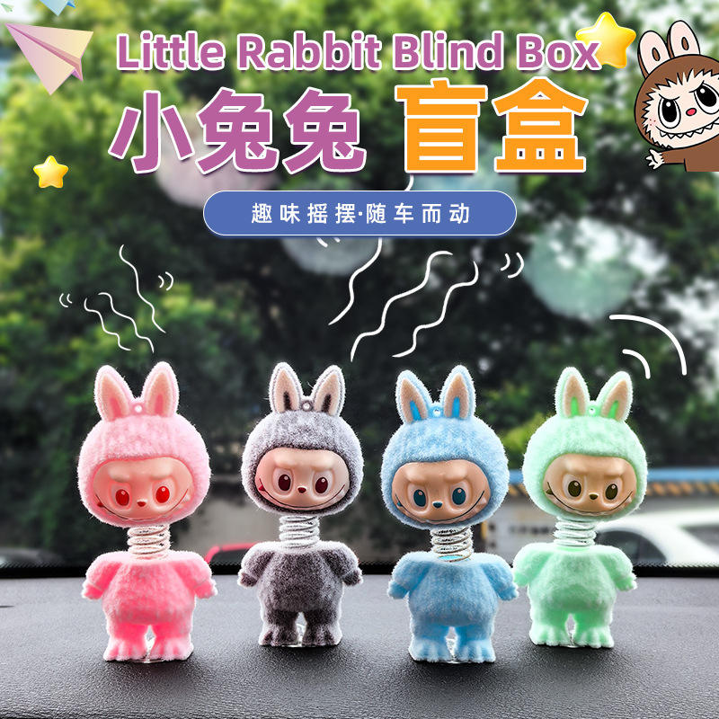 Spring Rabbit Blind Box Bobblehead Doll Car Decoration Shaking Head Cartoon Figure Plastic Animal Ornament