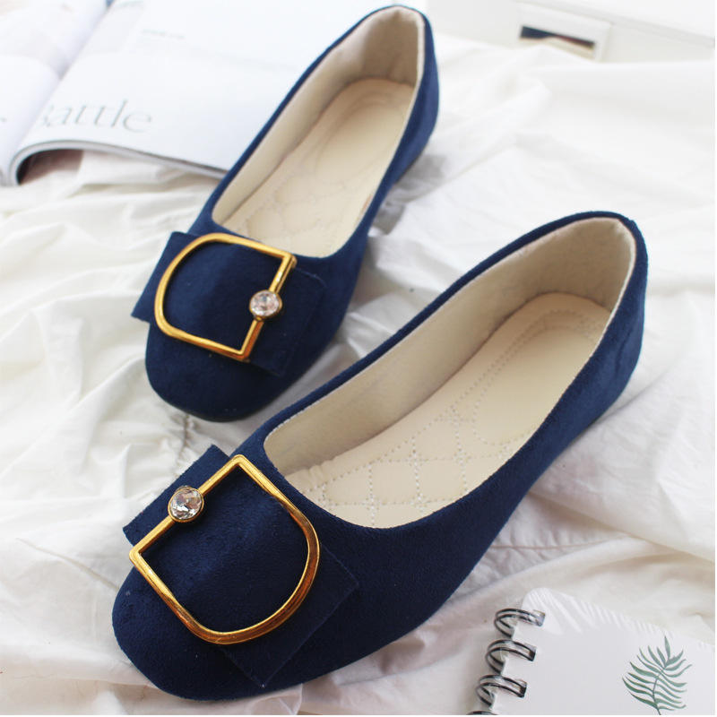Zapatos planos de primavera para mujer, mocasines de Color caramelo para mujer, zapatos de talla grande, estilo de mujer, hebilla de diamantes de imitación, punta cuadrada, Ballet