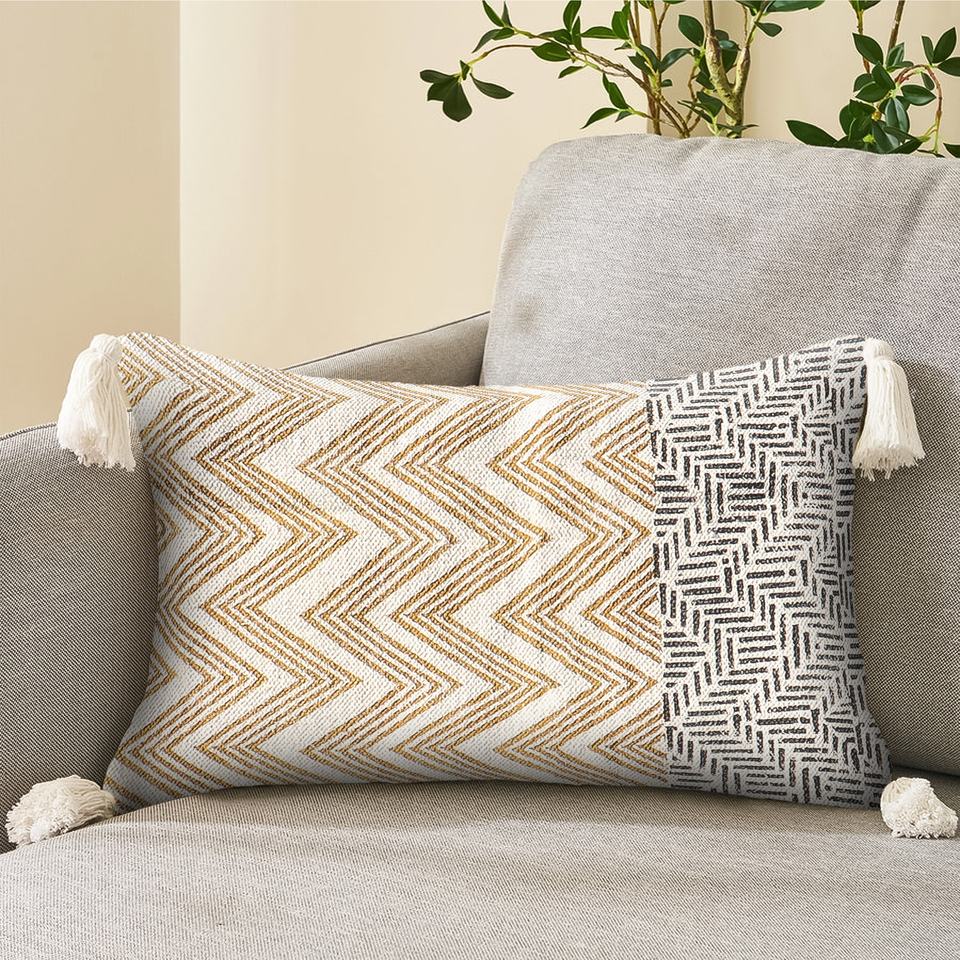 Fundas de Almohada de Piedra de Primavera, Funda de Cojín Estampada a Bloque, Funda de Cojín 100% Algodón, Funda de Cojín Hecha a Mano con Bordado