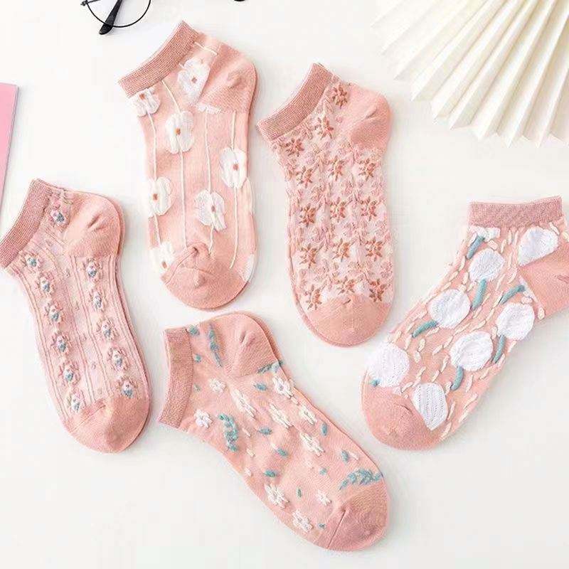 Calcetines Cortos de Jacquard Cómodos y Bonitos para Niñas, Calcetines Invisibles para Primavera, Verano y Otoño