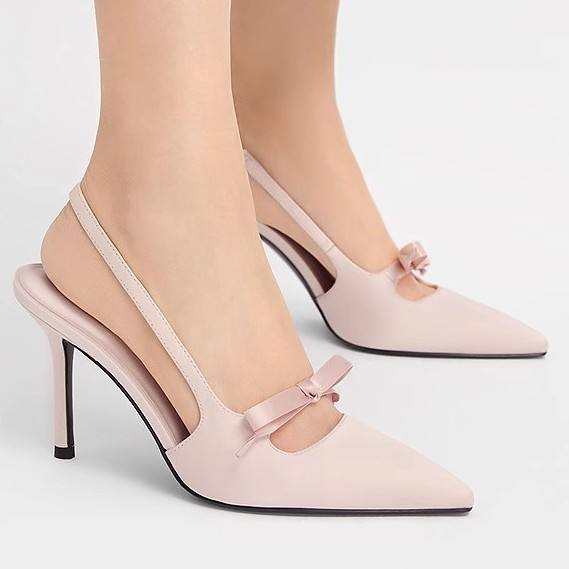 Colección Primavera Verano, Hermosas Sandalias de Tacón Alto para Mujer con Diseño de Lazo en Punta, Plantilla de PU, Venta al Por Mayor