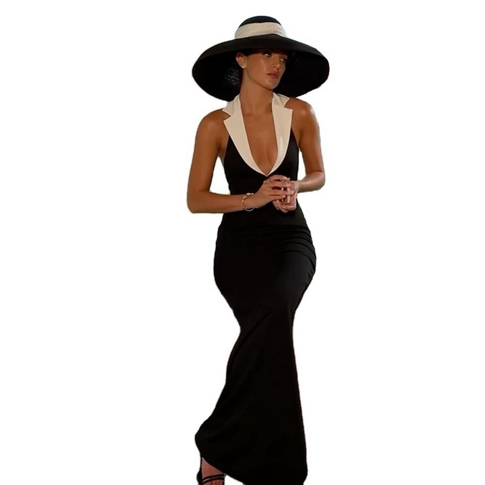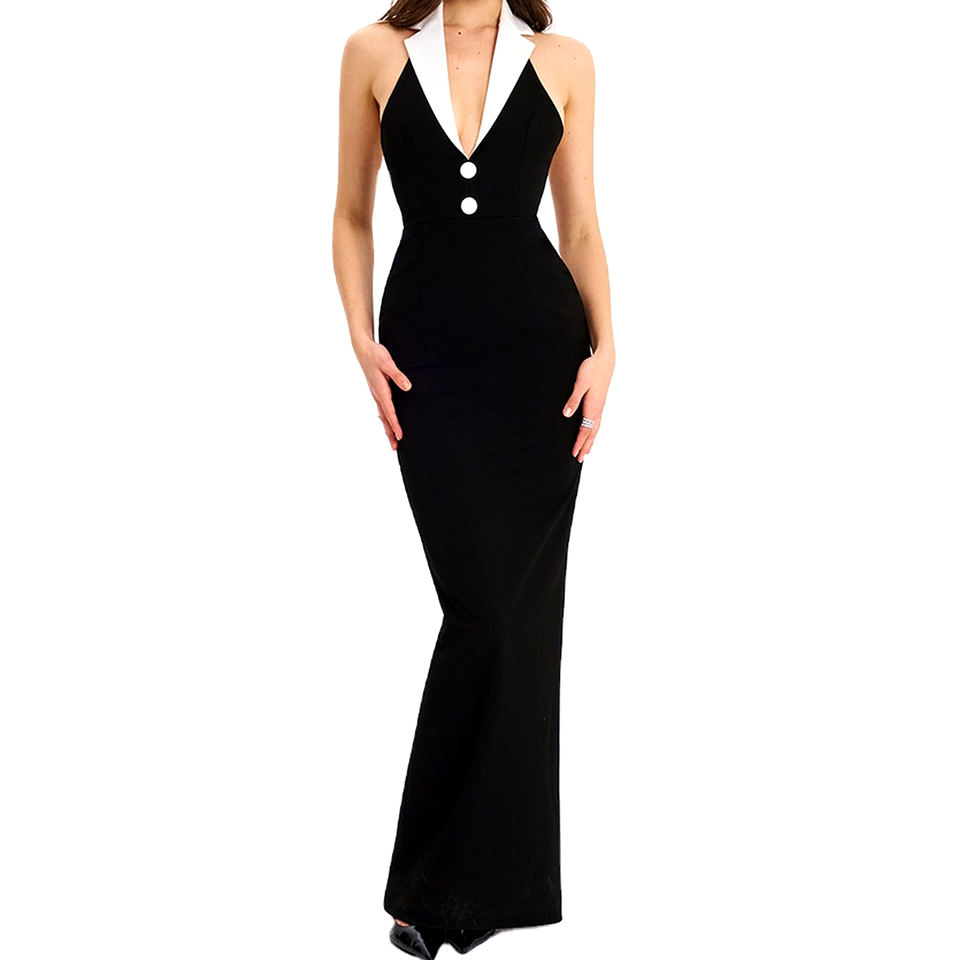 Primavera Verano elegante espalda descubierta hendidura Maxi Vestido Mujer fiesta Formal Sexy Slim Fit sin mangas Vestido largo de noche