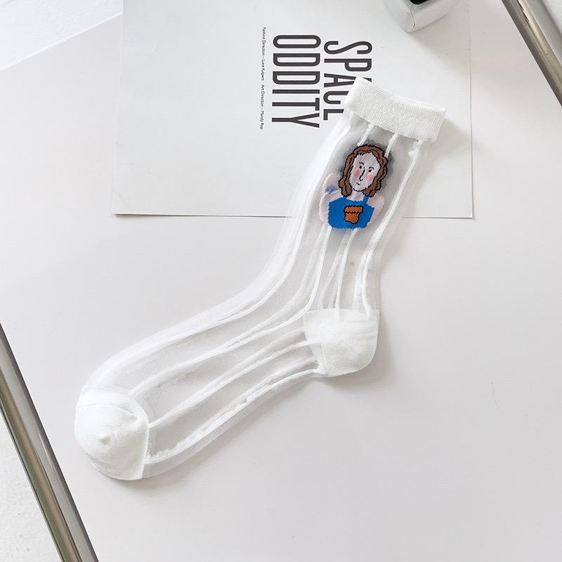 Calcetines de media pantorrilla de seda de cristal para mujer, con ilustraciones de dibujos animados, para primavera y verano