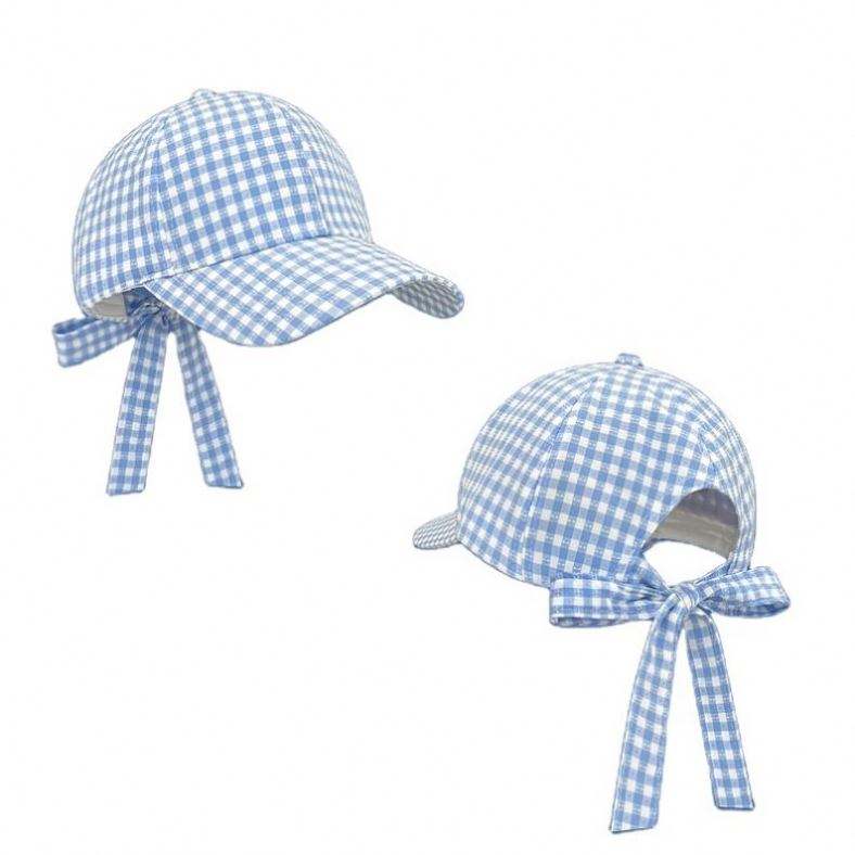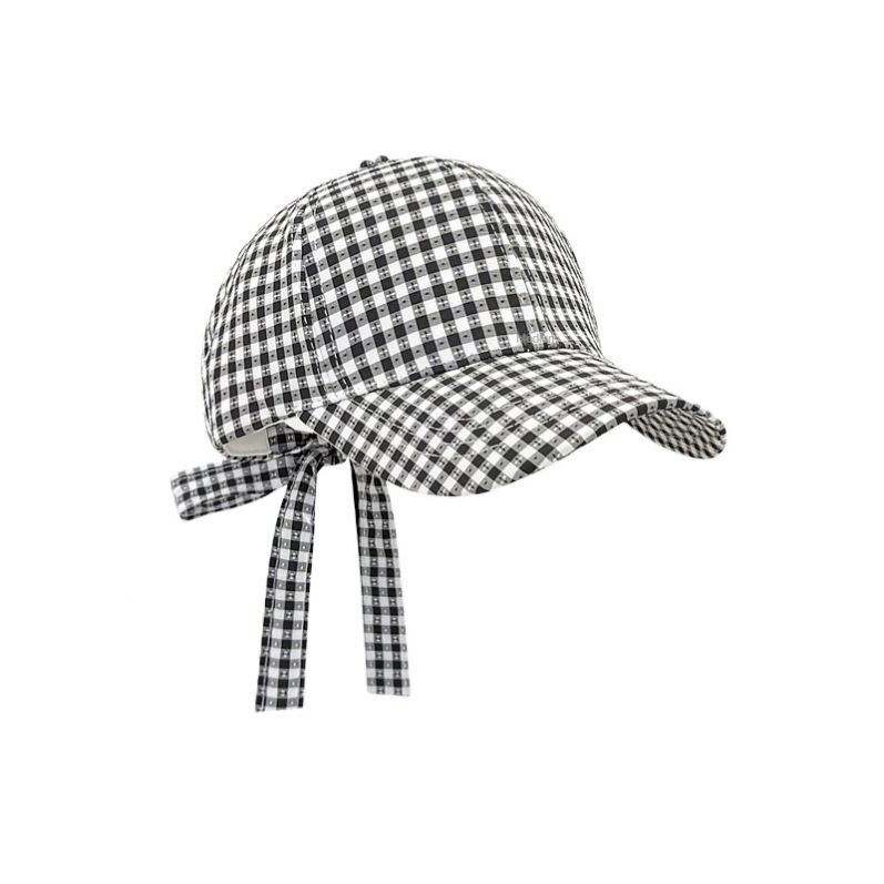 Gorra de Béisbol a Cuadros Estilo Coreano Japonés, Linda, con Lazo y Correa, para Mujer, Casual, Deportiva, Primavera-Verano