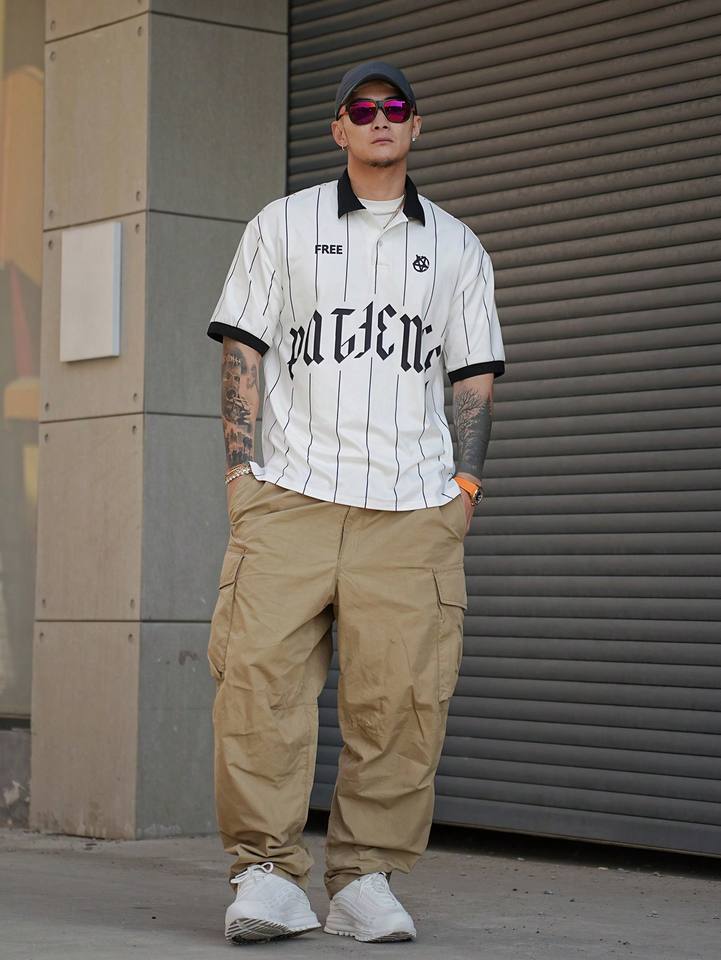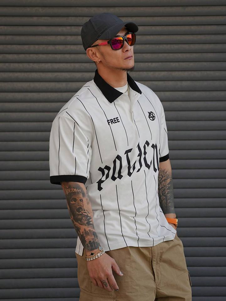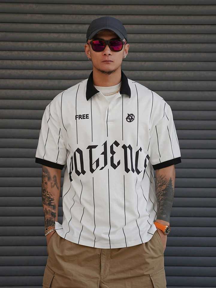 Polo a Rayas con Estampado de Letras para Hombre, Primavera/Verano, Ropa de Negocios