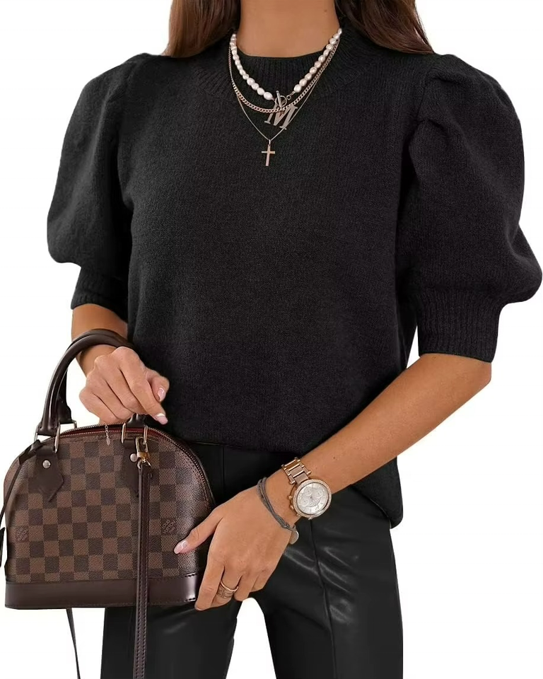 Suéter de Punto con Mangas Abullonadas para Mujer, Tendencia Primavera-Verano, Estilo Casual