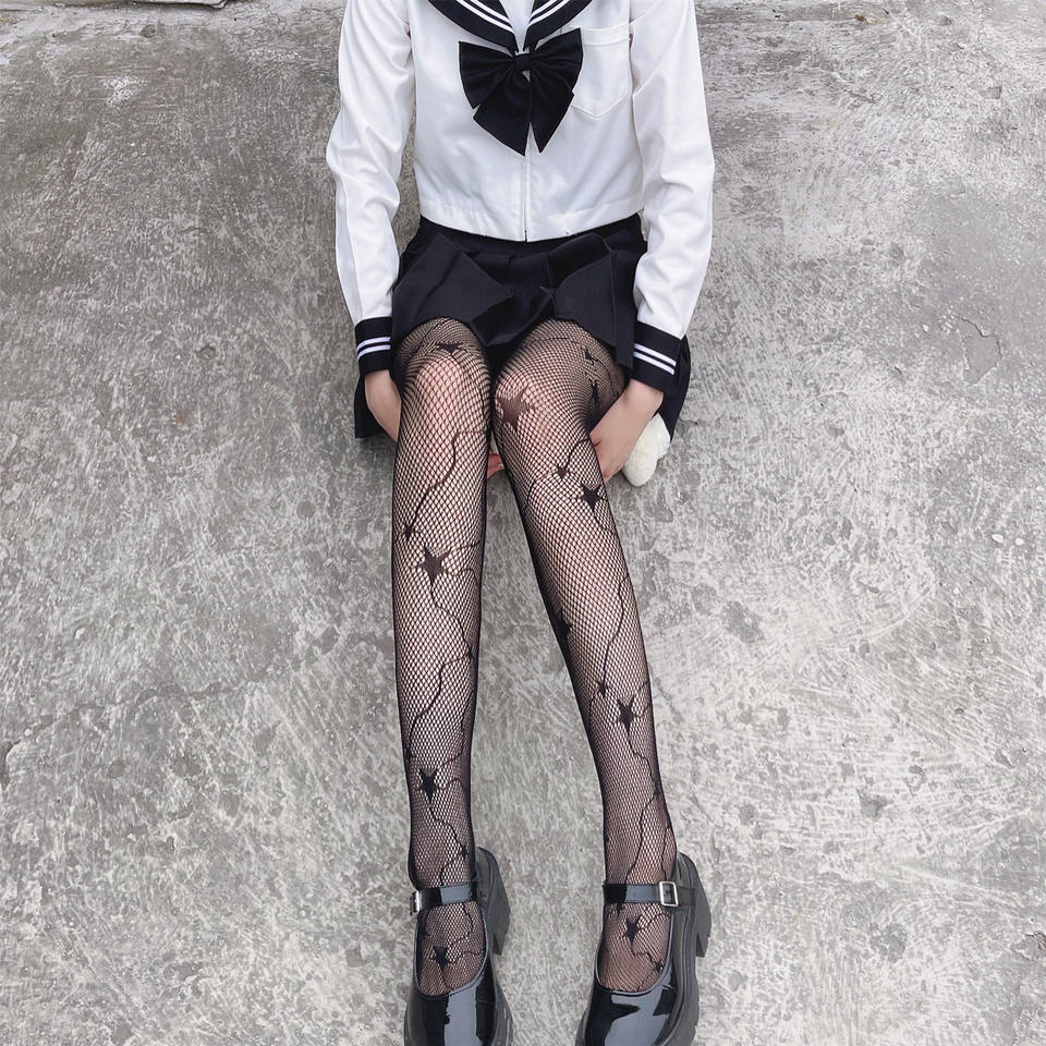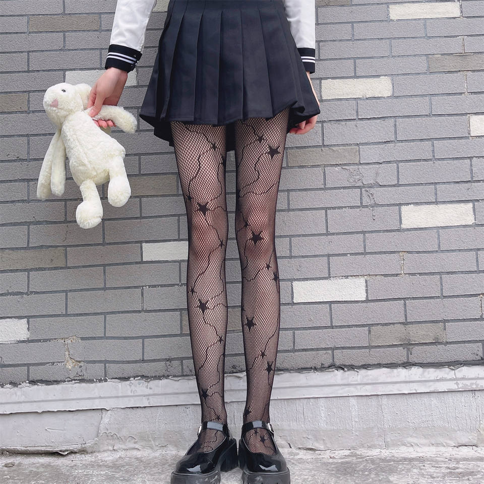 Medias de rejilla ultrafinas de jacquard con diseño de cola de estrella para primavera/verano, estilo oscuro para chicas, pantimedias transparentes en blanco y negro.