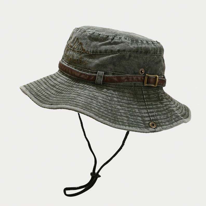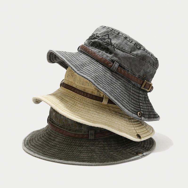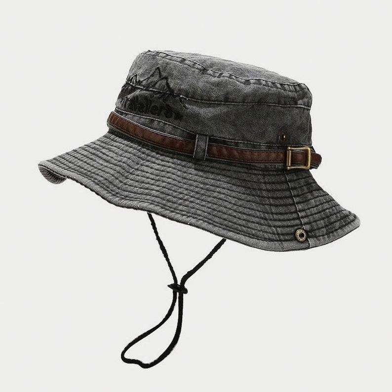 Sombrero de Pescador de Mezclilla Lavada para Primavera/Verano, con Letra Bordada Personalizada, para Deportes al Aire Libre y Pesca, con Cordones