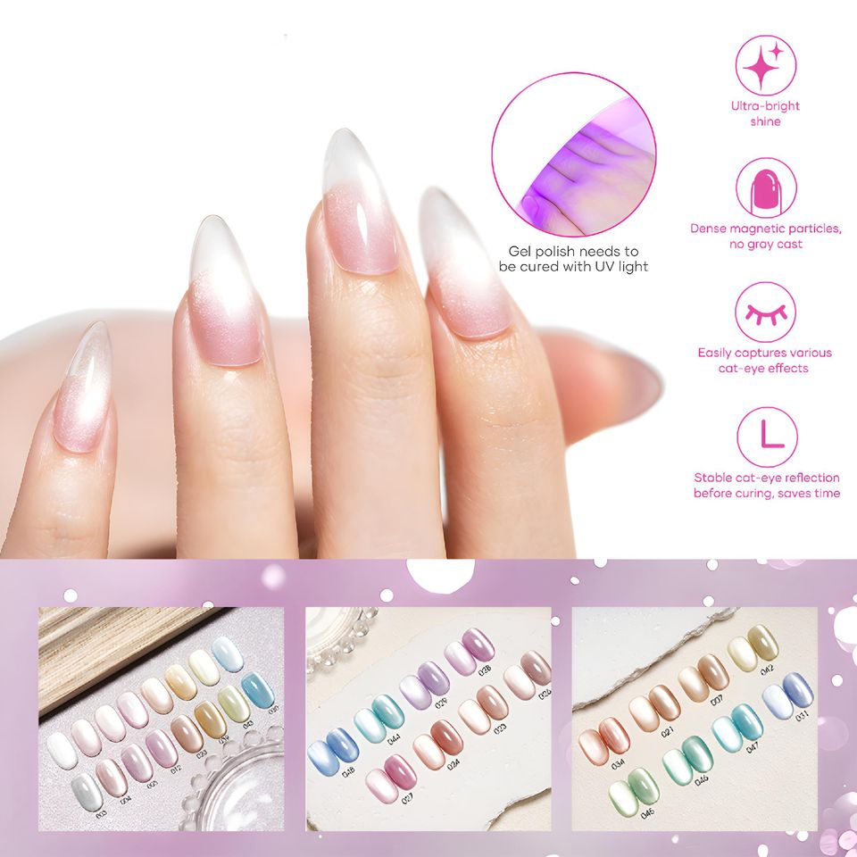 Esmalte de Uñas en Gel Efecto Ojo de Gato, 48 Colores de Moda, con Cuentas de Vidrio Magnéticas, UV, Set Profesional para Uñas, OEM Privado