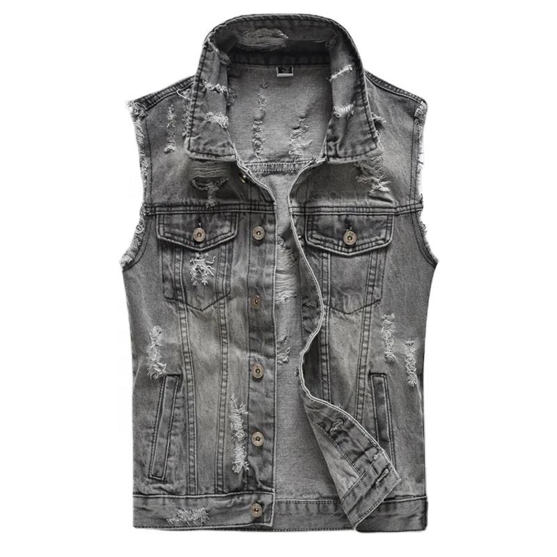 Chaleco vaquero sin mangas para hombre Retro de primavera Vintage, chaleco con botones y agujeros rasgados, ropa exterior para hombre, chaqueta, diseño de ropa desgastada