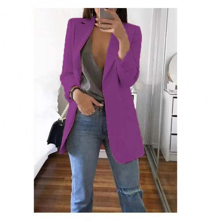 Chaqueta de Primavera para Mujer, Abrigos, Traje Casual Sólido, Cuello Polo, Manga Larga, Blazers para Oficina