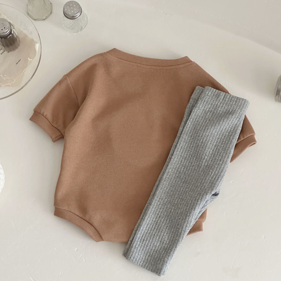 Primavera y otoño Baby Moon Patch manga larga Ha Yi + conjunto de pantalones de punto elástico personalización al por mayor