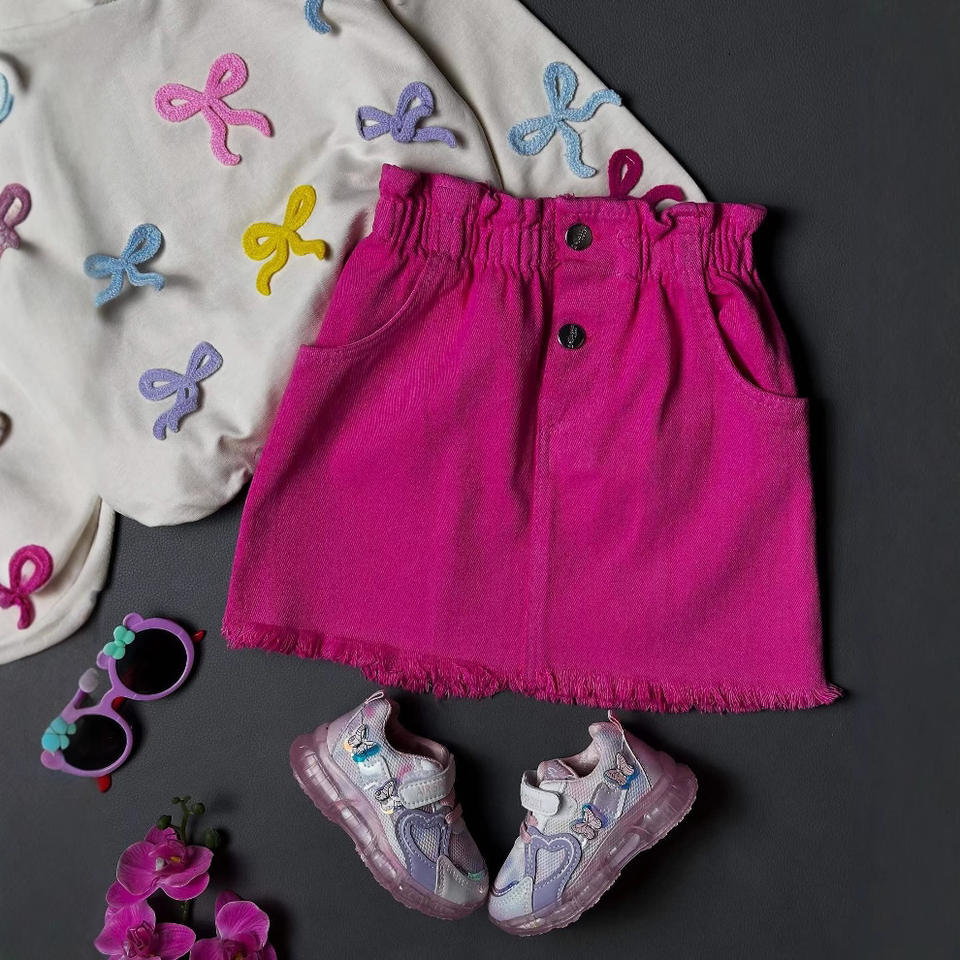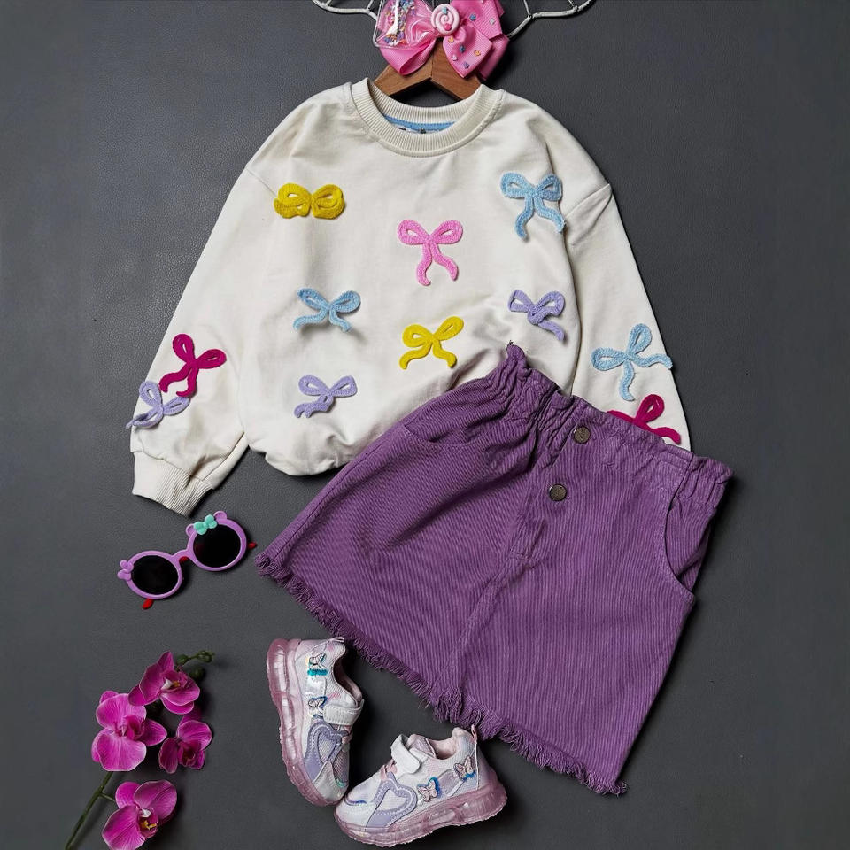 Conjunto de Dos Piezas de Algodón para Niñas, Estilo Moderno y Popular en Instagram para Primavera y Otoño, Cuello Redondo, Manga Larga con Lazo + Falda Corta