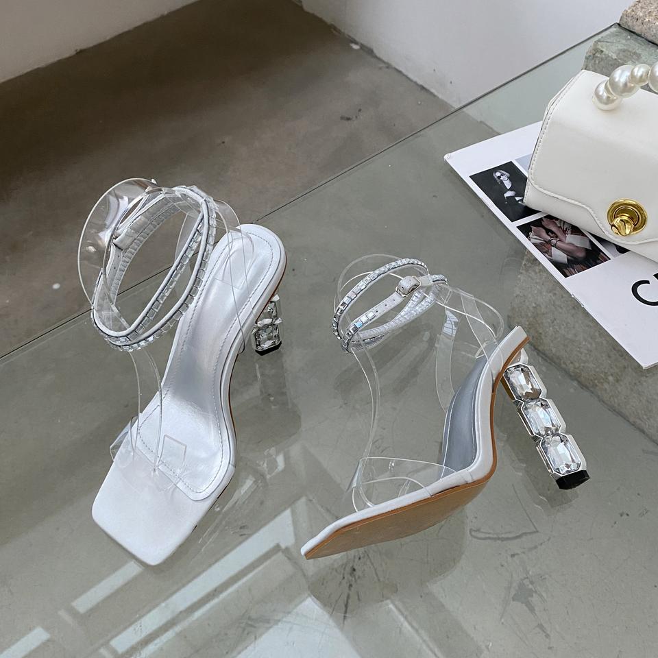 Sandalias de Tacón Alto con Pedrería y Correa en el Tobillo para Mujer, Primavera-Verano 2025