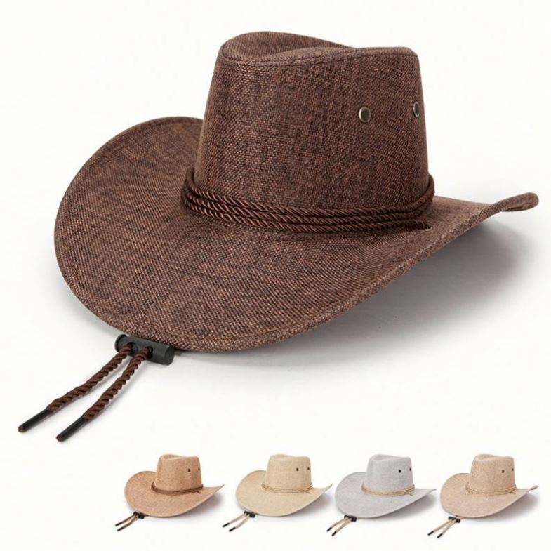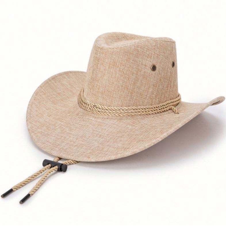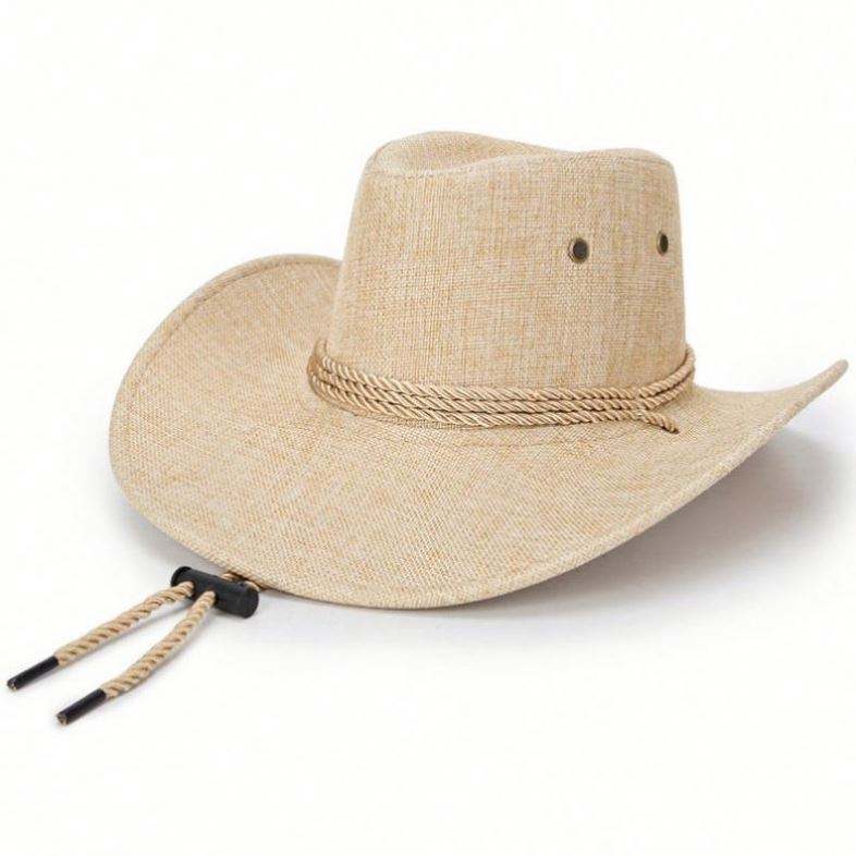 Sombreros de sol de lino para hombre, estilo vaquero, con ala ancha, para primavera y verano, protección solar, para playa