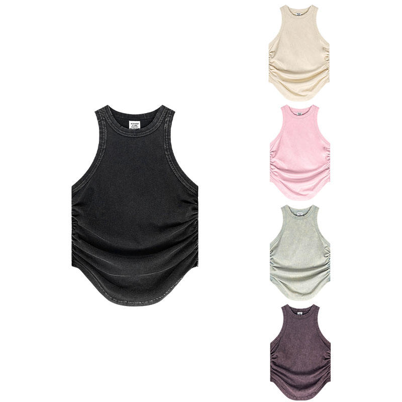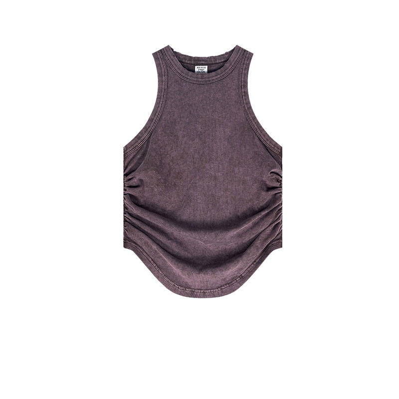 Chaleco Plisado para Mujer, Estilo Americano, Color Sólido, Casual, Versátil, Sexy, Primavera-Verano