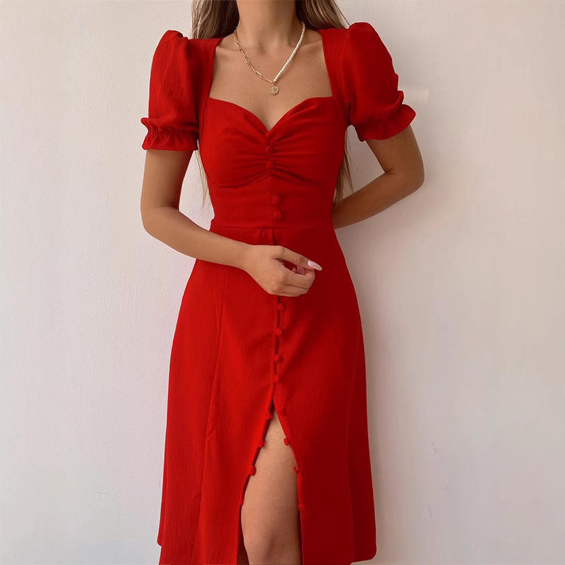 Vestidos midi de mujer con cuello en V y abertura, de nueva colección primavera-verano, a la moda