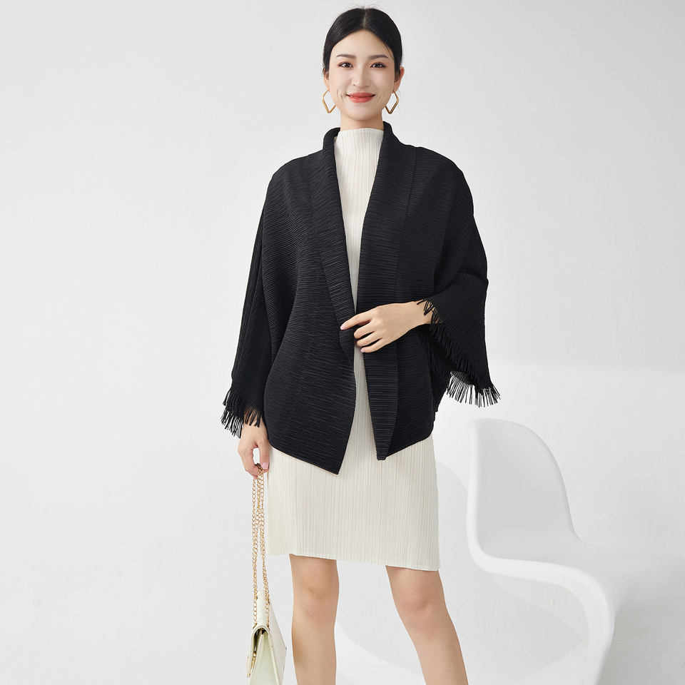 Chaqueta Cárdigan de Mujer, Primavera, Nueva, de Alta Calidad, Cruzada, con Pliegues, Manga Regular, Borlas Irregulares, Ligera y Ecológica