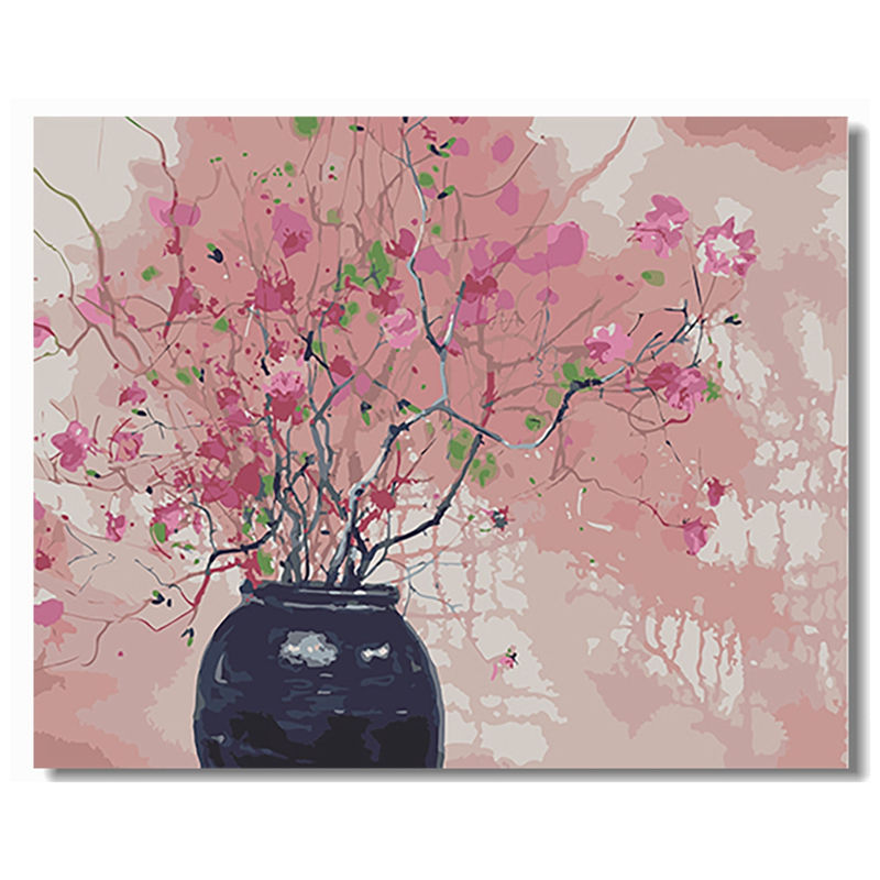 Pintura de flores rosas de primavera por números, jarrón moderno sin marco, pintura al óleo de flores para decoración para sala de estar