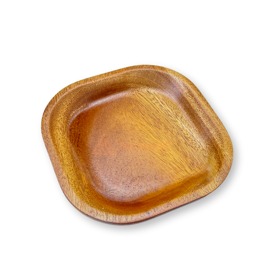 Plato cuadrado de madera de acacia, bandeja para servir, plato de bambú ecológico con patrón de plantas para servir postres