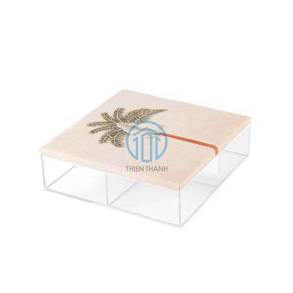 Caja cuadrada de acrílico con cubierta de lino Organizador de almacenamiento personalizado Hecho en Vietnam