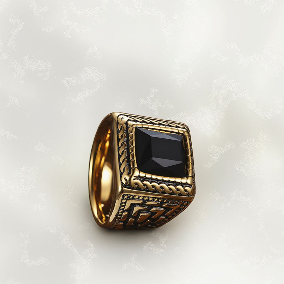 Anillo de sello cuadrado de piedra negra para hombre, anillo de boda clásico de Color chapado en oro, anillos para hombre, anillo de acero inoxidable