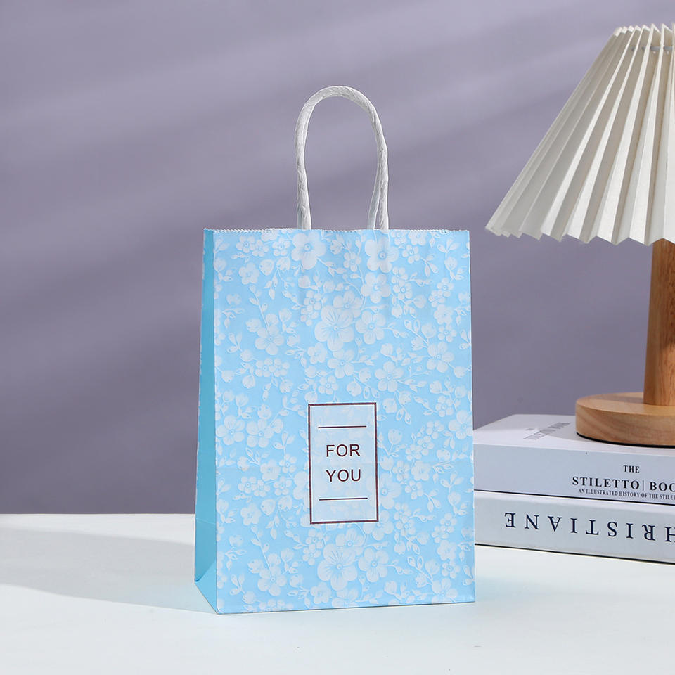 Tridimensional cuadrado inferior impreso pequeño regalo Floral papel Kraft regalo portátil joyería bolsa de compras pedidos personalizados al por mayor