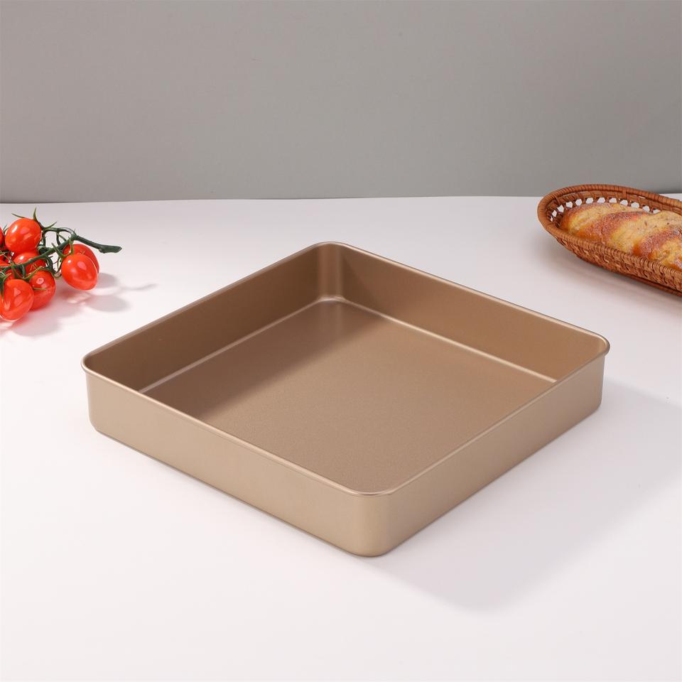 Square Cake Pan 28x28cm Non Stick Gold Baking Tray Oven Safe For Cake Mold