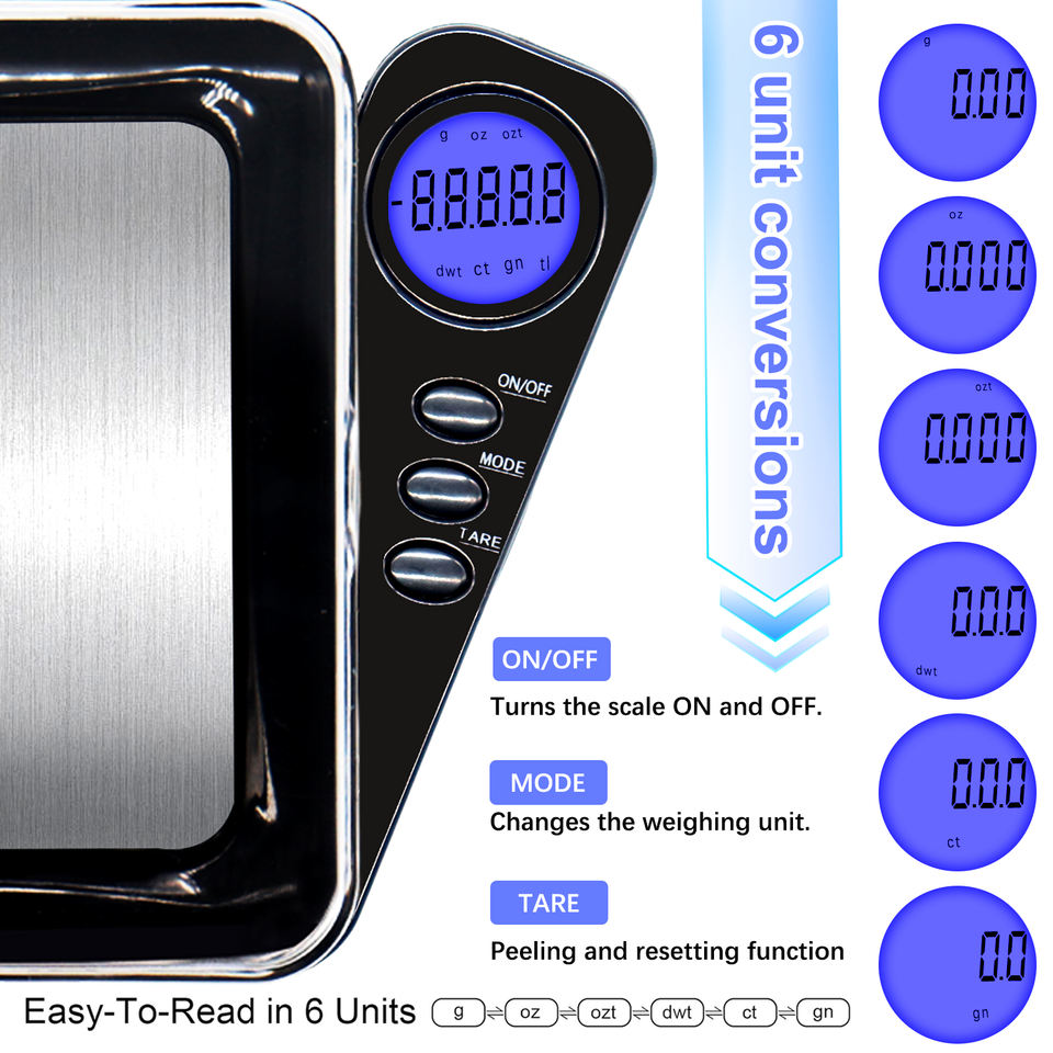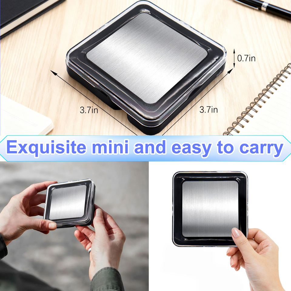 Báscula de Bolsillo Cuadrada Personalizada con Logotipo, Mini Báscula de Cocina de Acero Inoxidable de 650g/0.1g de Precisión para Pesar Objetos Pequeños