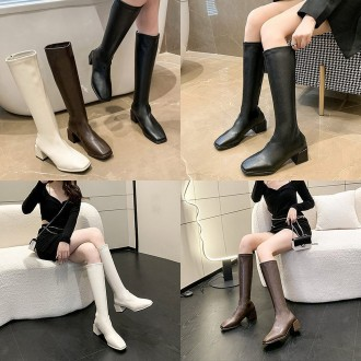 Square Fit Long Pumps Botas con cremallera trasera delgada de tacón completo Diseño simple y elegante