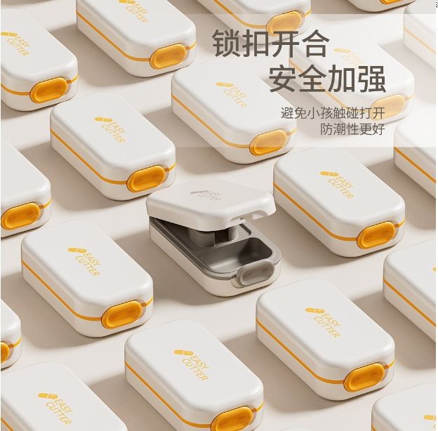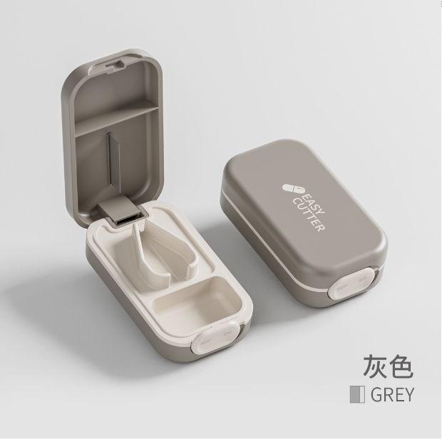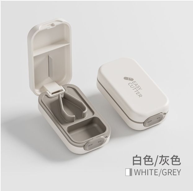 Cortador de Pastillas Cuadrado y Caja de Almacenamiento Portátil 2 en 1, Mini Organizador Divisor a Prueba de Polvo, Triturador de Pastillas