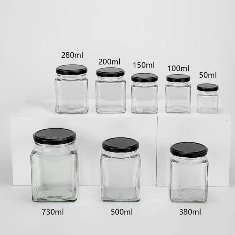 Tapas de metal para tarros de vidrio cuadrados de 50ml, 3 Oz, 12 Oz, 100ml, 200ml, 500ml, para galletas, leche, miel