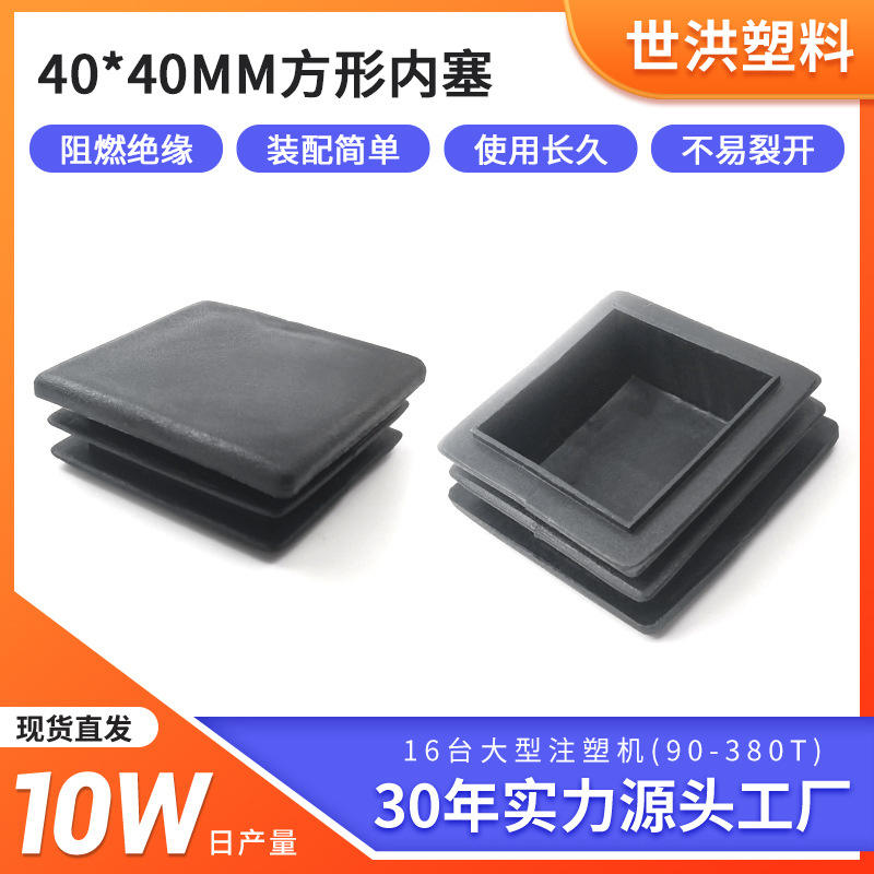 Tapón interior cuadrado de 40x40mm, tapa de extremo de tubo de plástico negro para muebles y marcos metálicos, fácil instalación