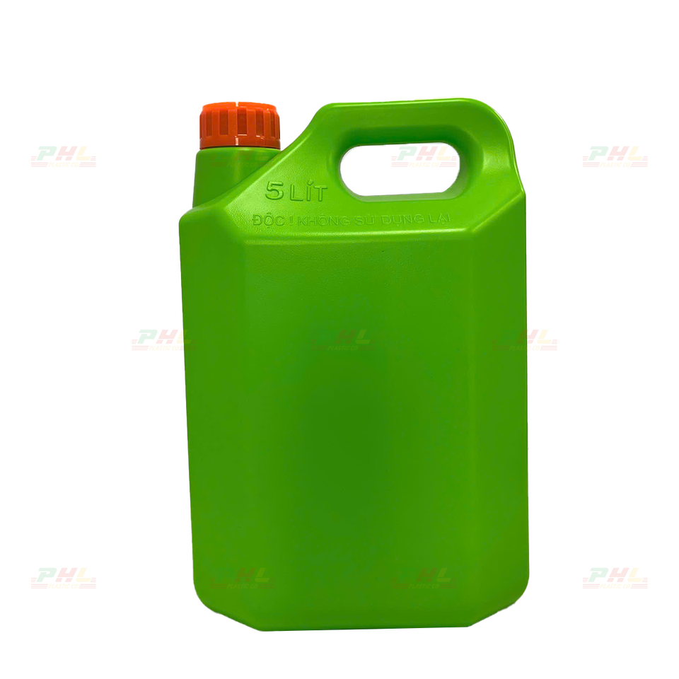 Bidón Cuadrado de HDPE de 5000 ml (5 Litros), Diámetro del Cuello 45 mm, Botella de Plástico para Almacenamiento de Fertilizantes, Productos Químicos y Aceite, Hecho en Vietnam