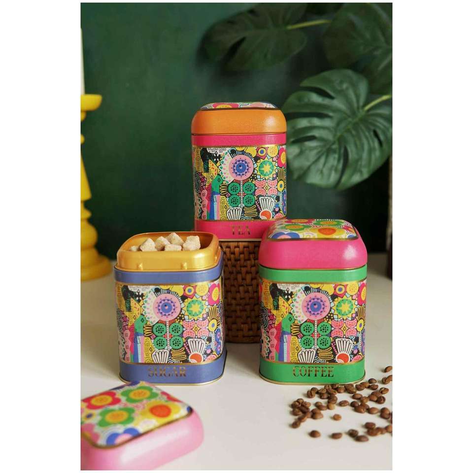 Juego de caja de almacenamiento de metal cuadrado 180x180x118 (3 piezas) Diseño de girasol y girasol